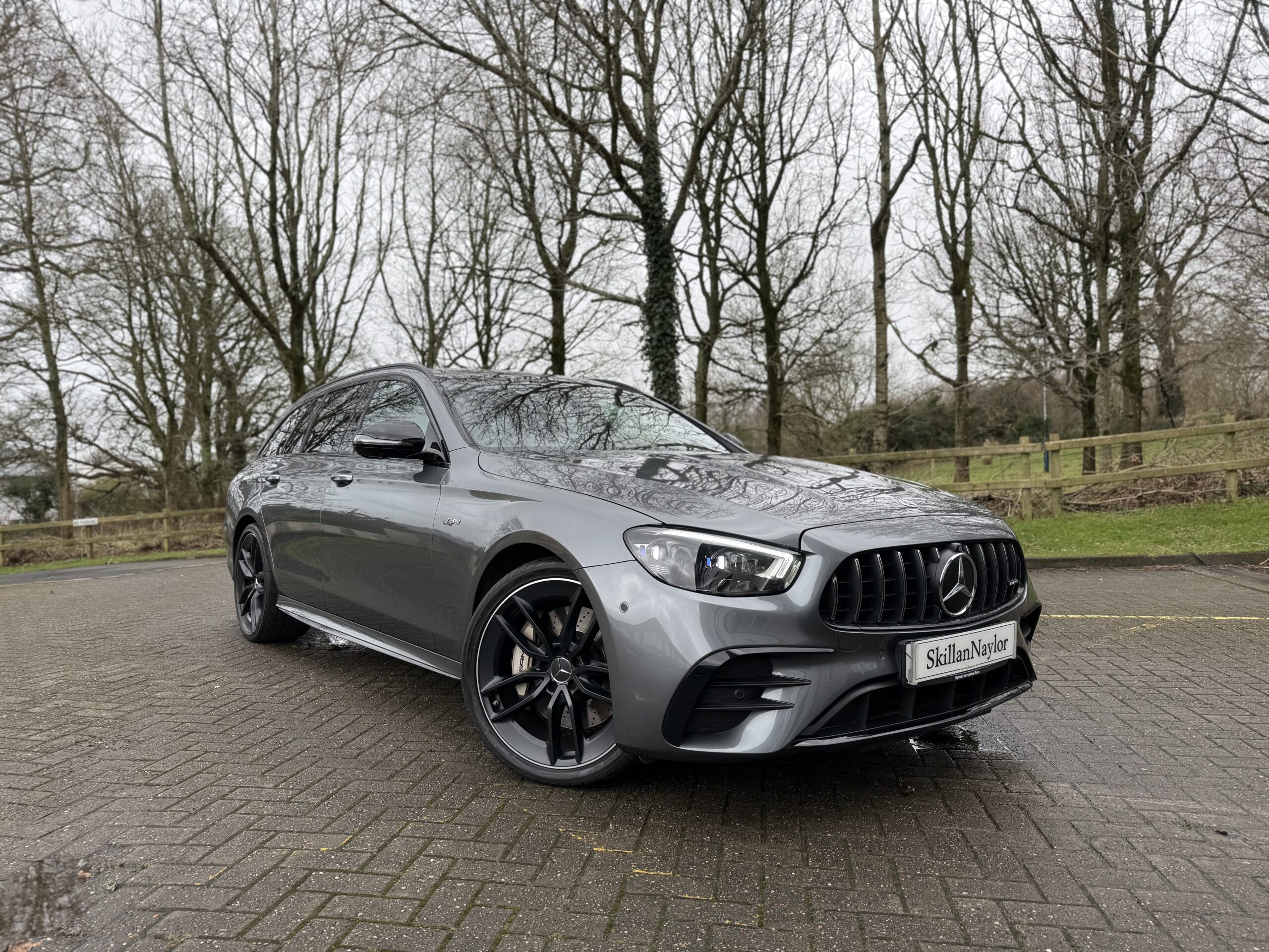 SkillanNaylor Car Company are pleased to offer this 2021 Mercedes AMG E53 Estate 3.0 4Matic+ Night Edition Premium Plus Auto seen in Anthracite Grey Metallic with Mocha Nappa Leather upholstery.